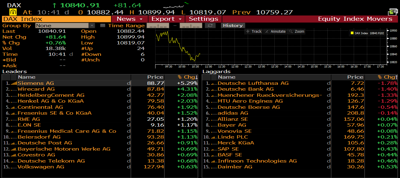 DAX members at 9:41 am BST. Source: Bloomberg