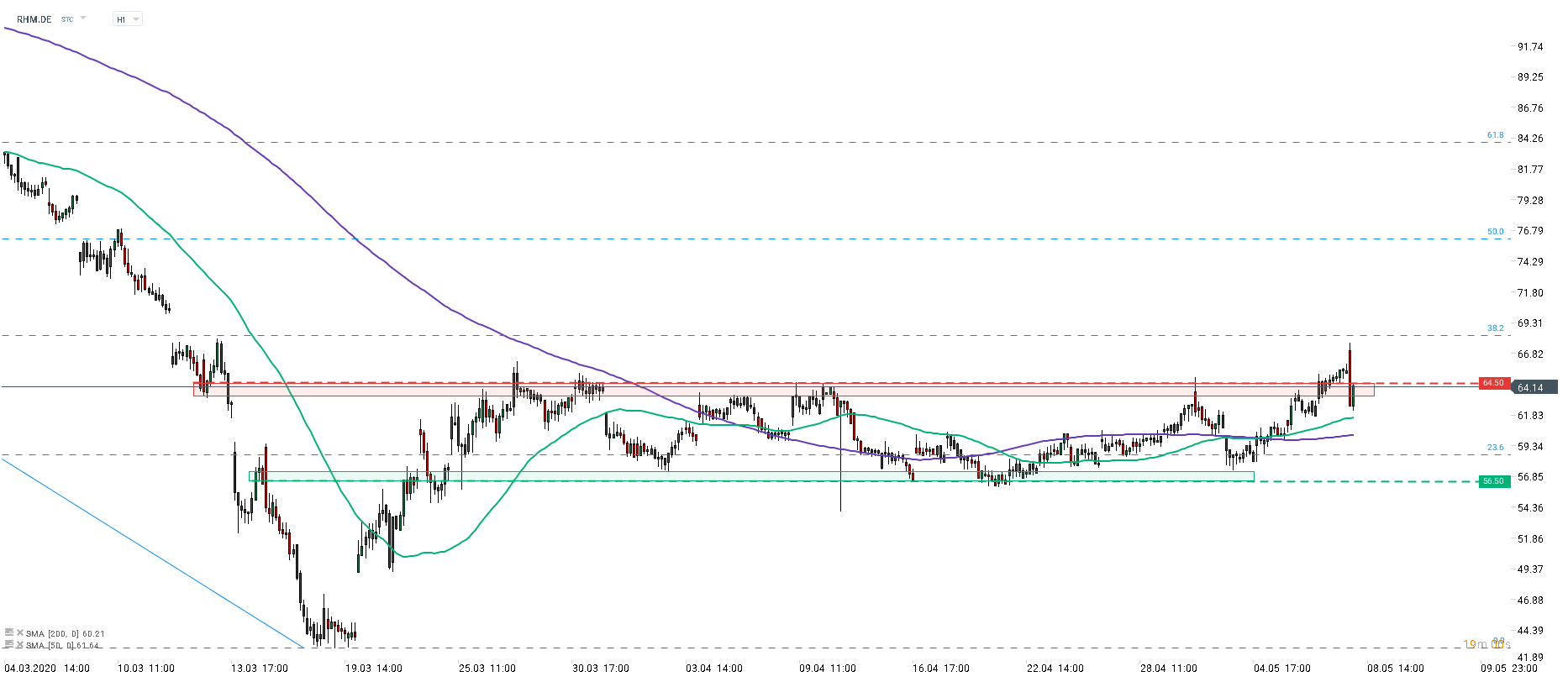 Rheinmetall (RHM.DE) opened higher today but reversed slightly below 38.2% retracement of this year's slump. The stock pulled back below the price zone at €64.50 that served as the upper limit of the consolidation range. We are observing an attempt to break back above. In case of a failure, two levels to watch are 23.6% retracement (€58.70) and zone at €56.50. Source: xStation5