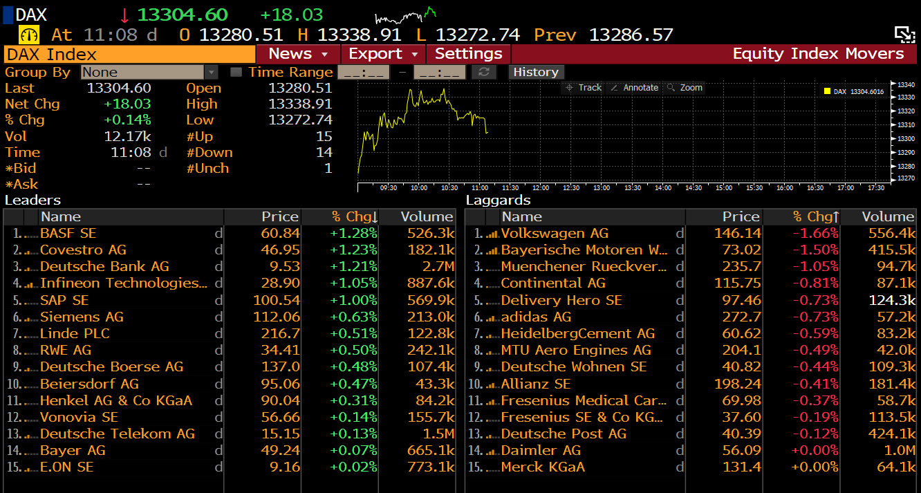 DAX members at 10:08 am GMT. Source: Bloomberg