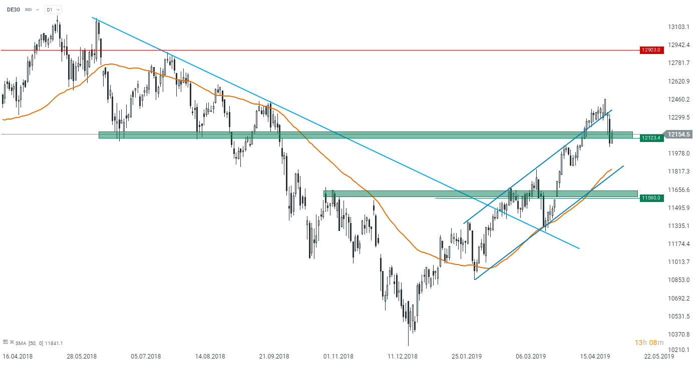 Although market sentiment seems to have improved in early trading in Europe, a technical outlook for the German DE30 does not look well. This is due to a breakdown we saw yesterday as the price plunged and came back to the upward channel. From this perspective one may suppose that bulls may currently struggle to climb above the upper end of the channel anew. If so, some profit-taking could occur and then bears may attempt to take control. Such a scenario has been sketched out by us lately and if we are right a pullback toward the lower end of the linear pattern could be on the cards. Source: xStation5