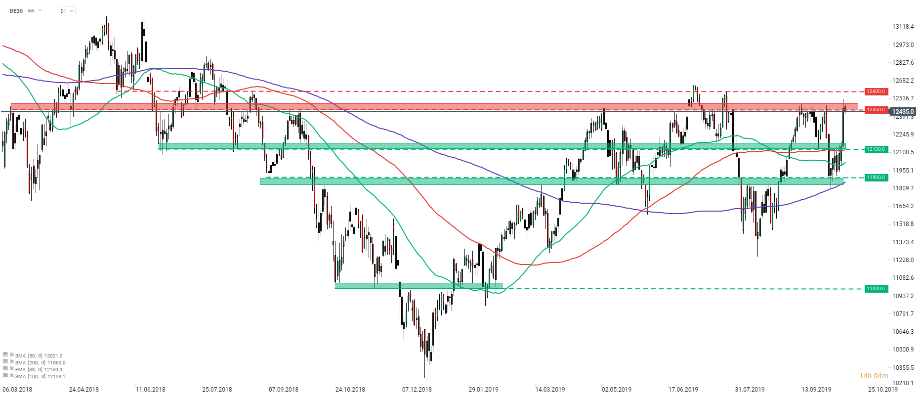 DE30 pulls back from the resistance zone ranging above 12450 pts