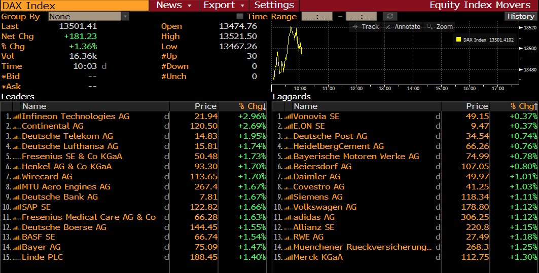 DAX members at 9:03 am GMT. Source: Bloomberg