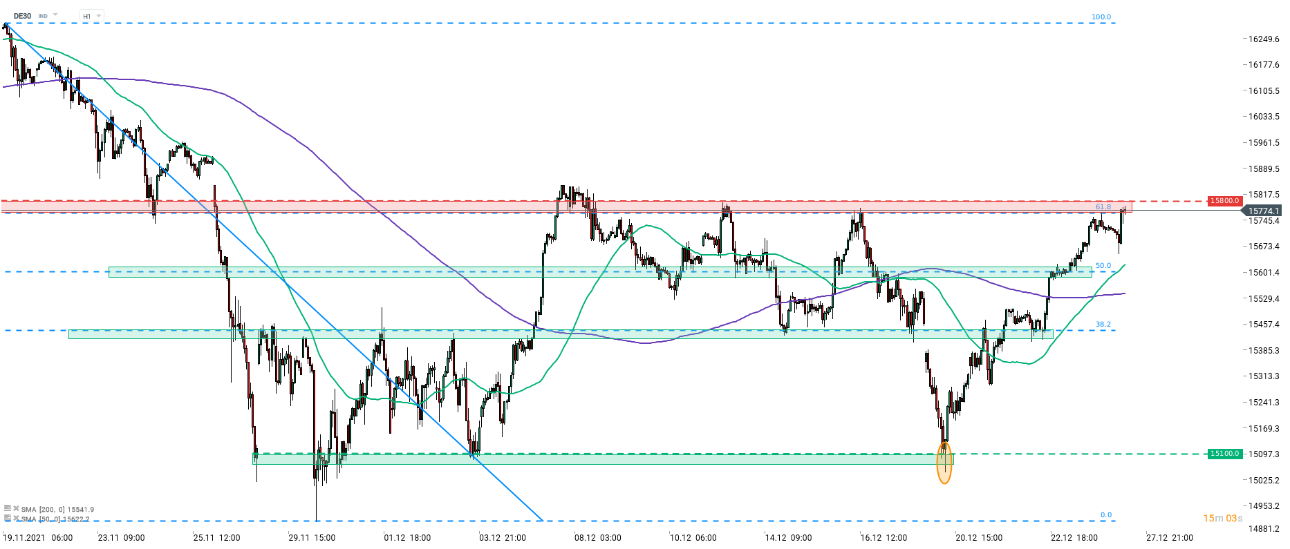 DE30 tests resistance zone ranging below 15,800 pts