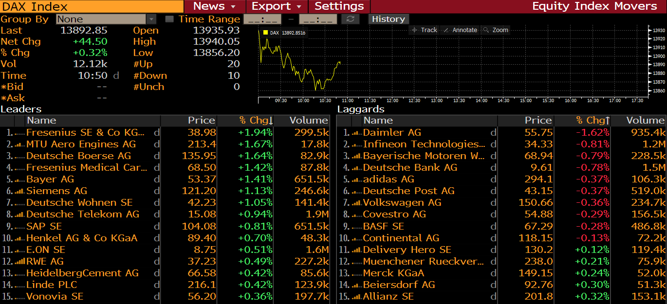 DAX members at 9:50 am GMT. Source: Bloomberg