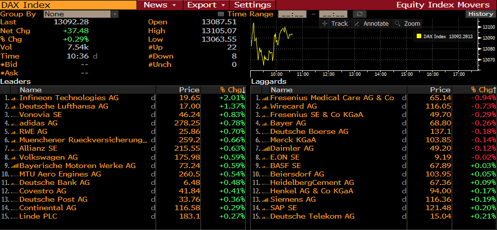DAX members at 9:36 am GMT. Source: Bloomberg
