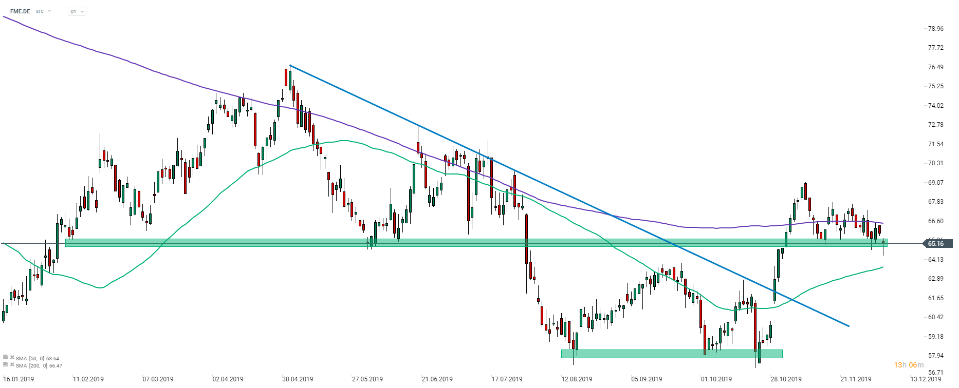 Fresenius Medical (FME.DE) managed to break above downward trendline at the turn of October and November. Following a 20% surge, price action eased near the 200-session moving average (purple line). The stock has been swinging around this moving average for almost a month and is now testing the support zone ranging above the €65 handle. Source: xStation5