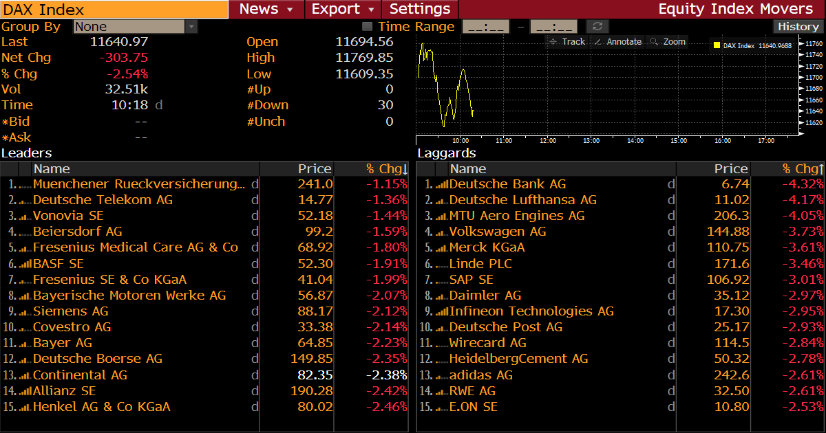 DAX members at 9:18 am GMT. Source: Bloomberg