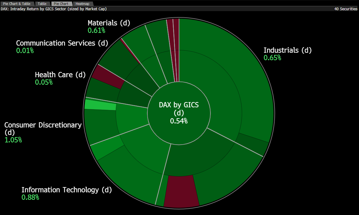 - Futures on the DAX are trading higher today, and the cash DAX is up nearly 0.5 percent. Almost all sectors in the index are posting gains.