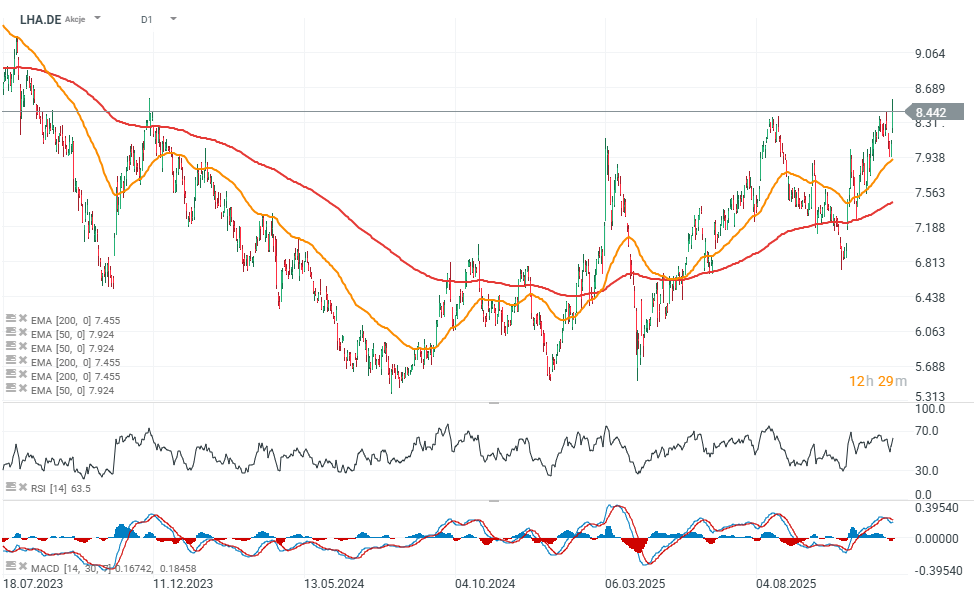 Lufthansa shares are up as much as 6.9 percent, reaching their highest intraday level since August 2023. Kepler Cheuvreux upgraded the German flagship carrier to “buy” from “hold,” pointing to an increasingly attractive risk-to-reward profile and supportive factors heading into next year. The price target was raised to 11 euros (from 7.50 euros).