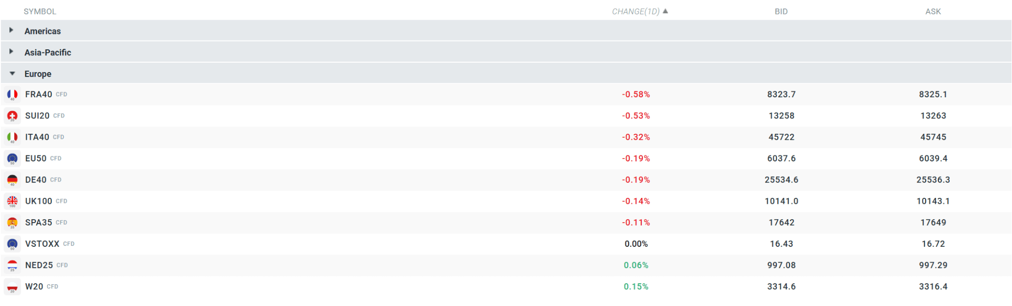 Current quotations for major contracts. Source: xStation