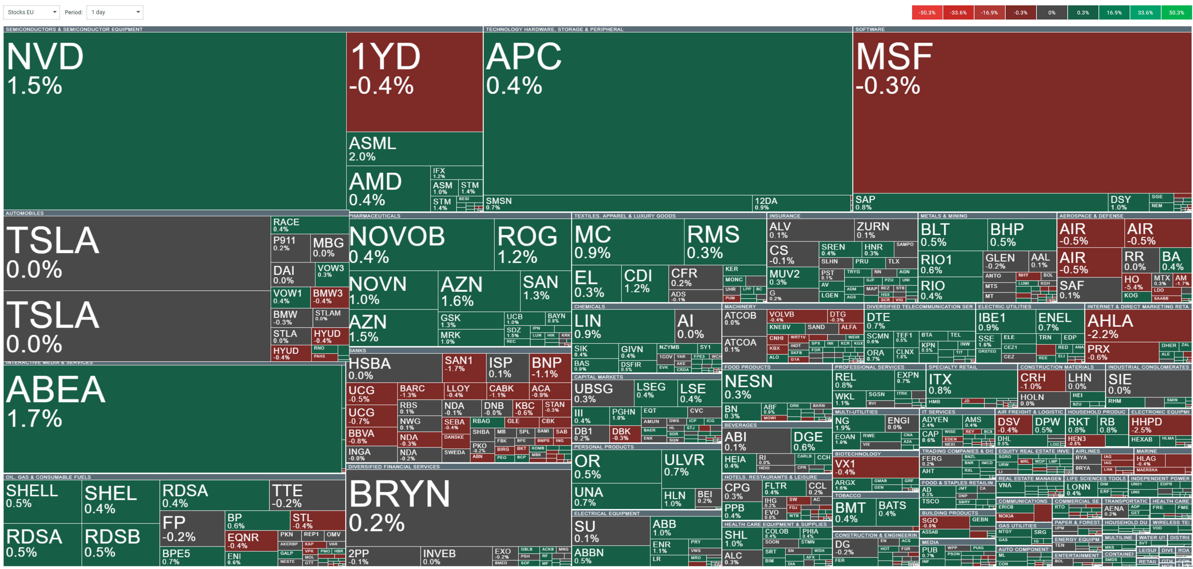 The improved market sentiment is particularly evident in the sector rotation, with defensive sectors like Utilities and Health Care performing strongly alongside cyclical sectors, indicating balanced market participation. This positive performance comes despite recent challenging German PMI data, suggesting investors may be looking past near-term economic concerns.
