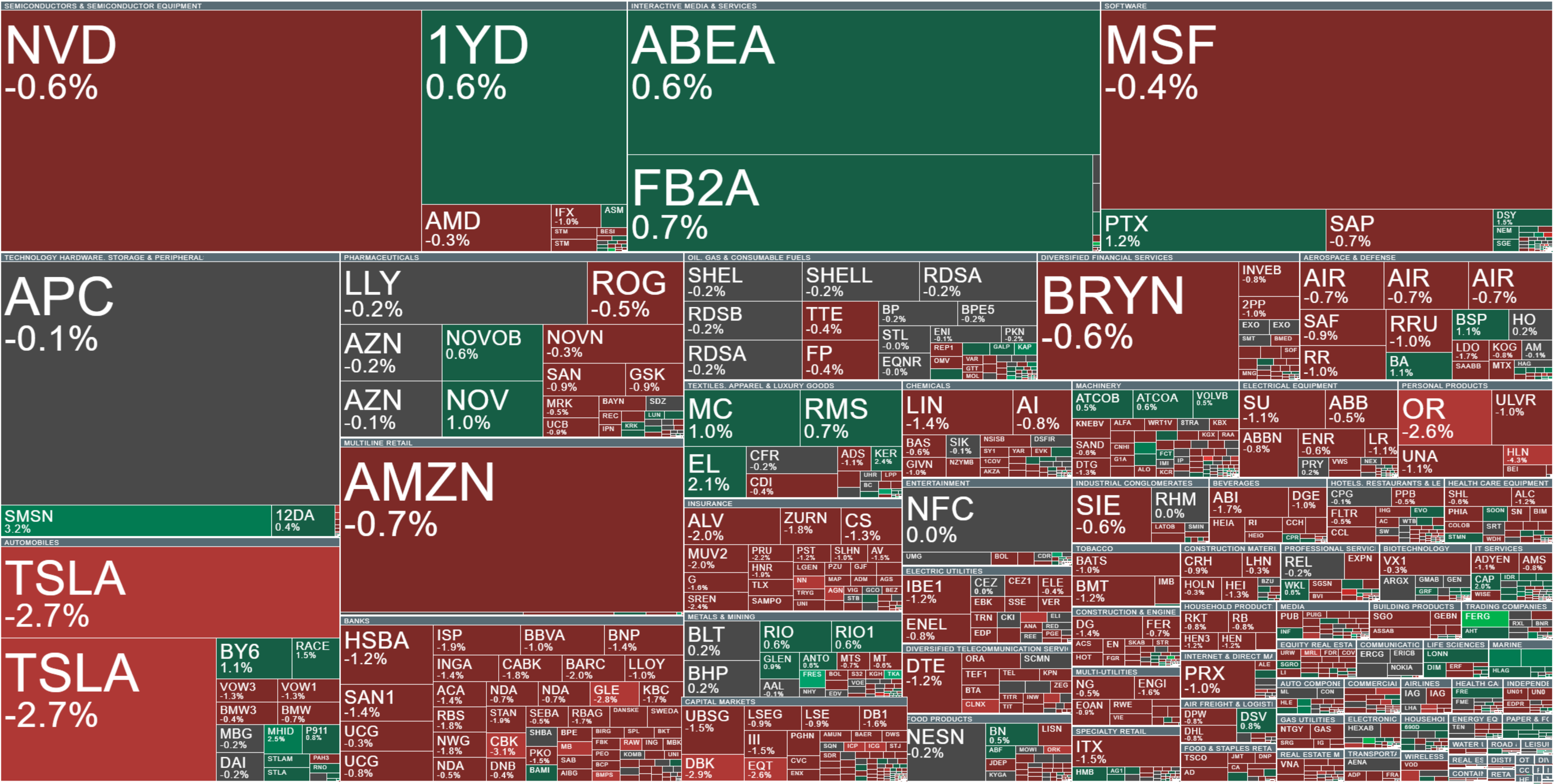 Danone (BN.FR) is gaining about 0.5% after Jefferies upgraded its rating from “Underperform” to “Buy.” Analysts praised the dynamic growth in its specialized nutrition segment in China and strong performance of high-protein products in North America. Despite challenges in the U.S. creamer segment, high-protein offerings have more than made up for the weakness.