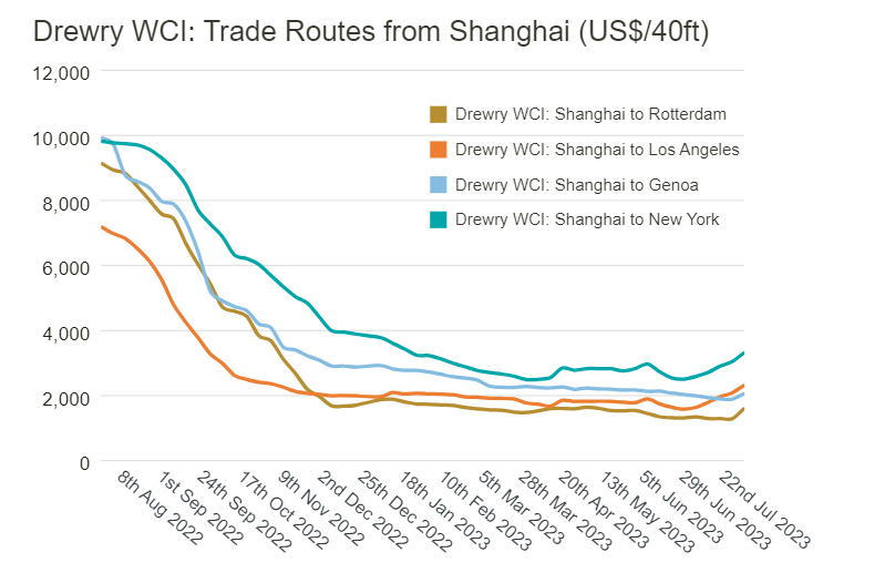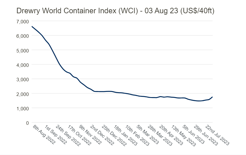 Container freight rates according to Drewry data are gradually increasing which potentially reflects the relatively still strong demand in the economy and the opening of China (although this is running well below expectations).