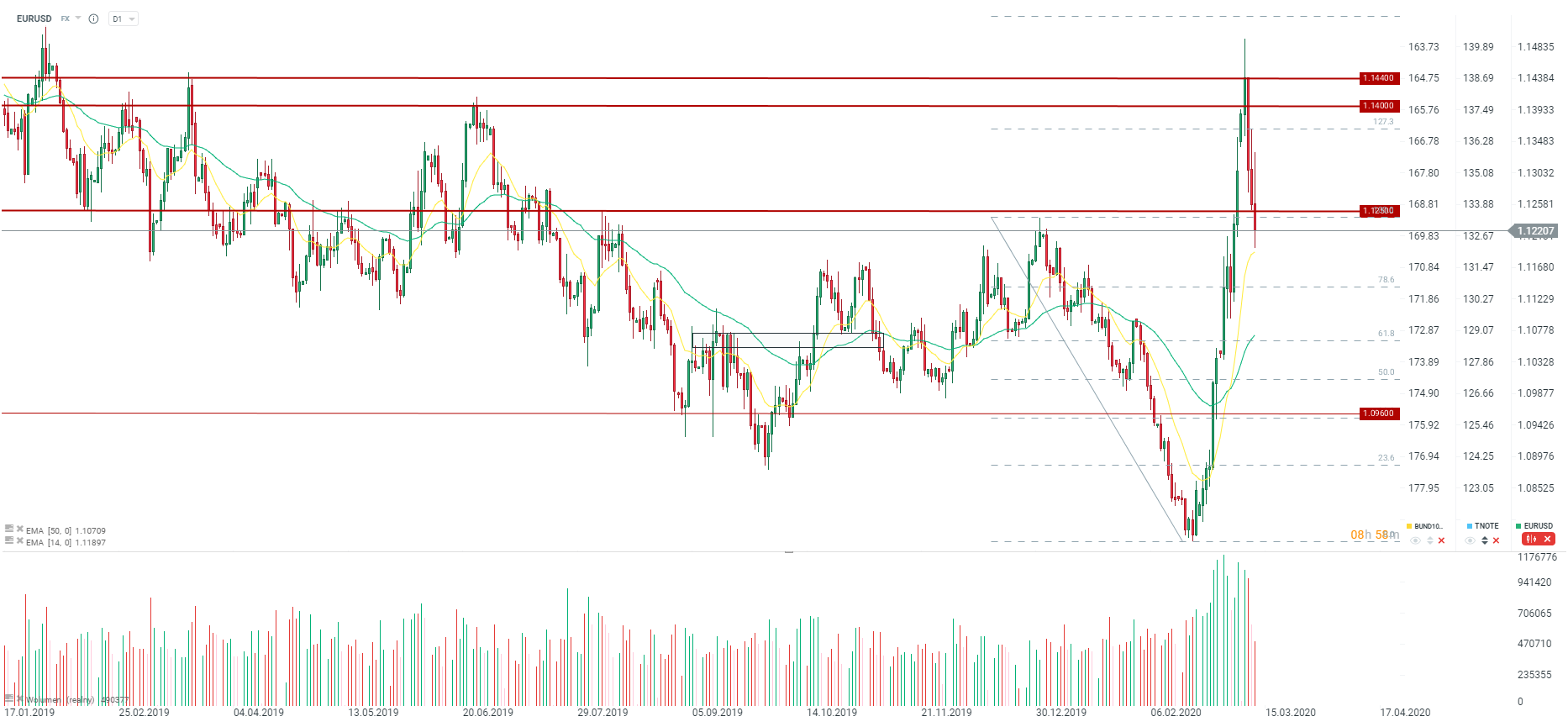 EURUSD continues to plunge following the ECB's decision. On the other hand, DAX is dropping almost 10%. Source: xStation5