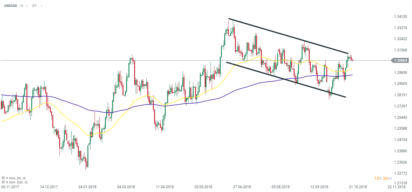The USDCAD is trading a notch below 1.31 on Wednesday morning. Source: xStation5