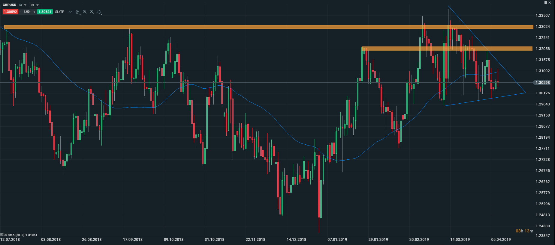 Na menovom páre GBPUSD sa vytvorila trojuholníková formácia. Support na úrovni 1,2960 ostáva kľúčovou úrovňou podpory tento týždeň. Priestor v trojuholníkovej formácii sa zmenšuje,čo naznačuje, že v najbližších dňoch by sme mali vidieť vymanenie sa z tohto obchodného pásma. Zvýšená volatilita môže prísť v priebehu zajtrajšieho dňa, kedy sa bude konať vyššie spomínaný summit. V prípade prerazenia klesajúcej trendovej línie smerom nahor, by sa otvoril priestor smerom nahor k úrovni 1,320 a následne až k 1,330 GBPUSD. Zdroj: xStation5