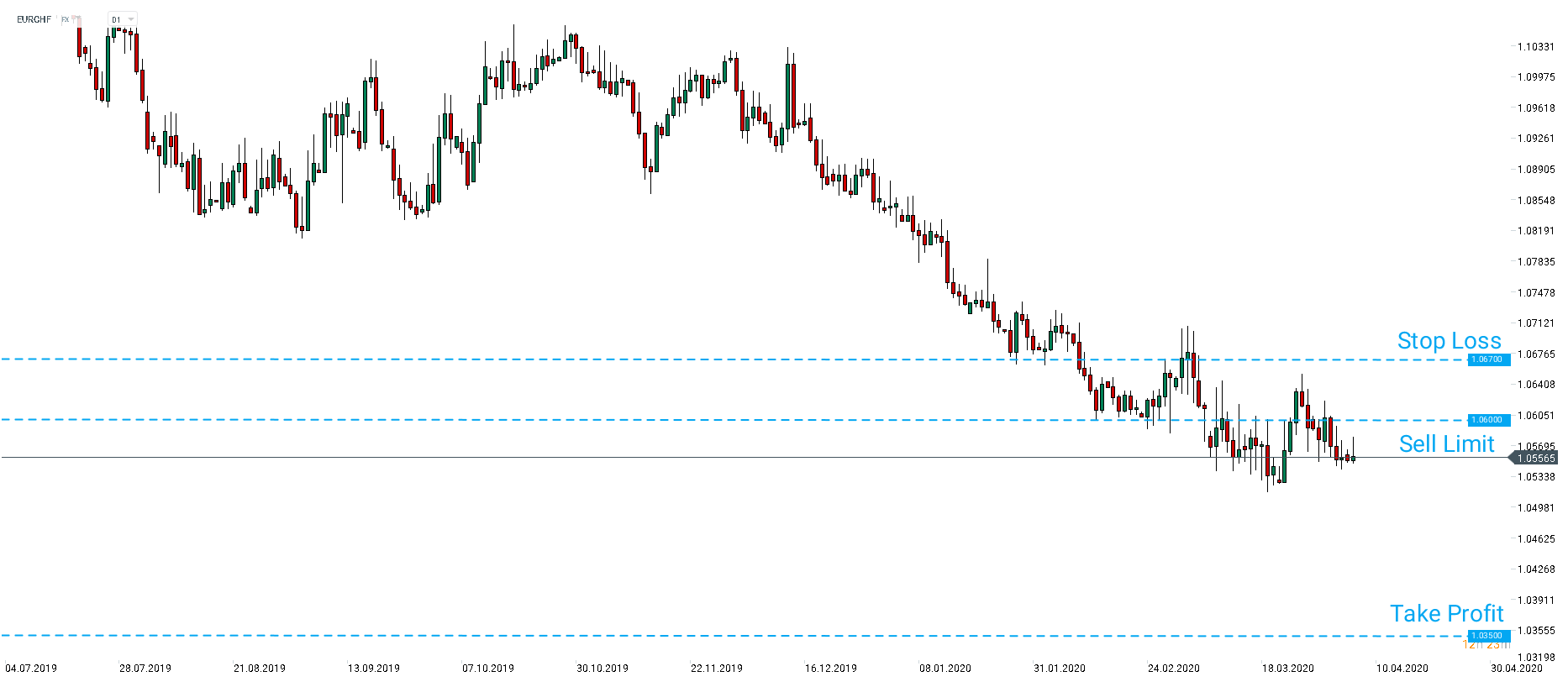 MUFG recommends taking a short position on EURCHF with a limit order at 1.0600, a target of 1.0350 and a stop loss order placed at 1.0670. Source: xStation5