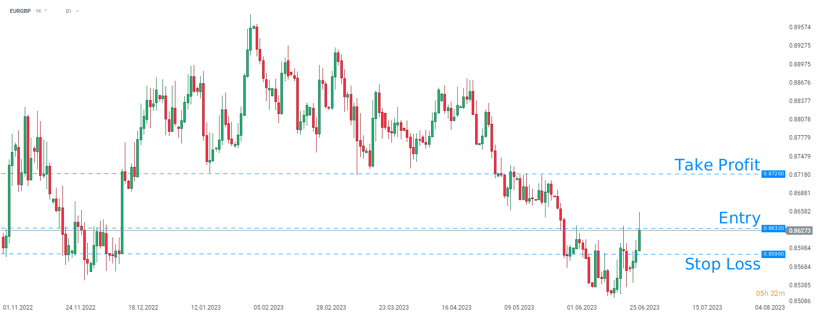 IFR recommends taking a long position on EURGBP at market price with a target of 0.8720 and a stop loss order placed at 0.8590. Source: xStation5