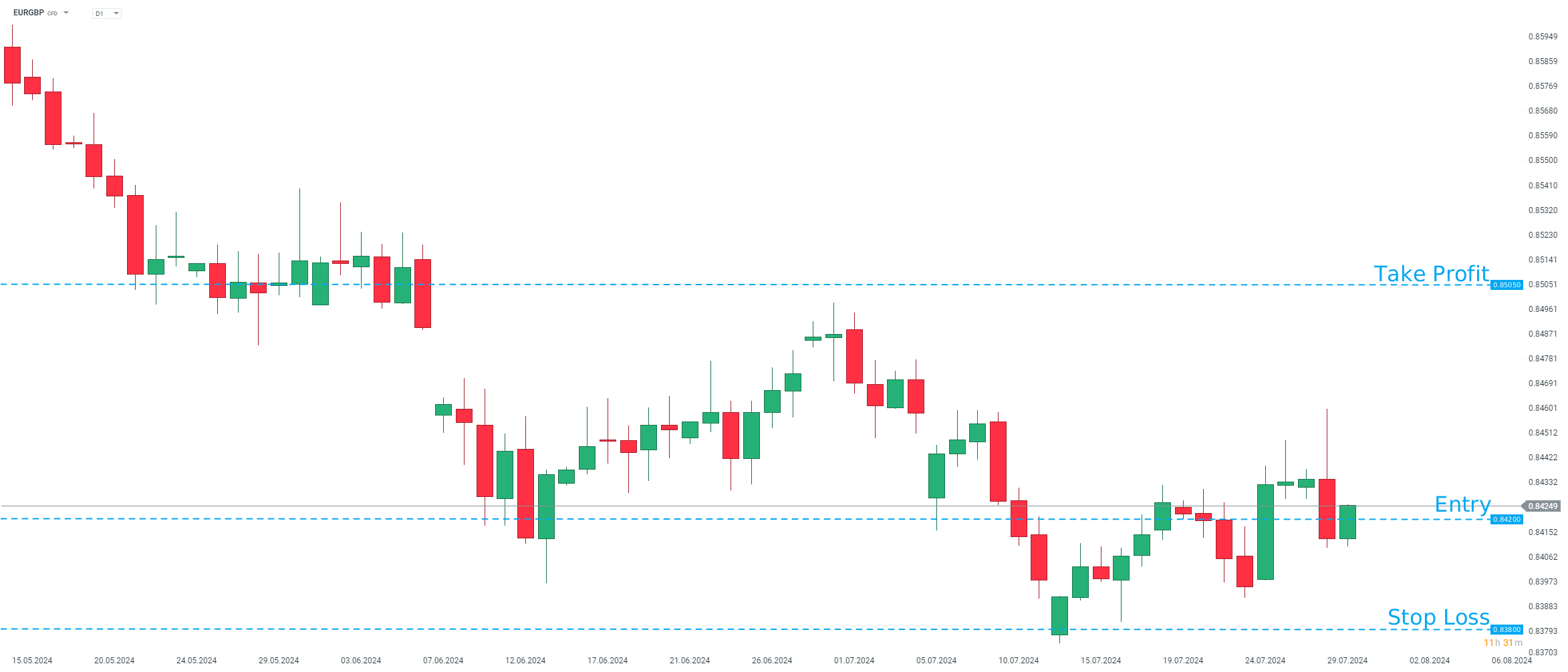 IFR recommends taking a long position on EURGBP at market price with a target of 0.8505 and a stop loss order placed at 0.8380. Source: xStation5