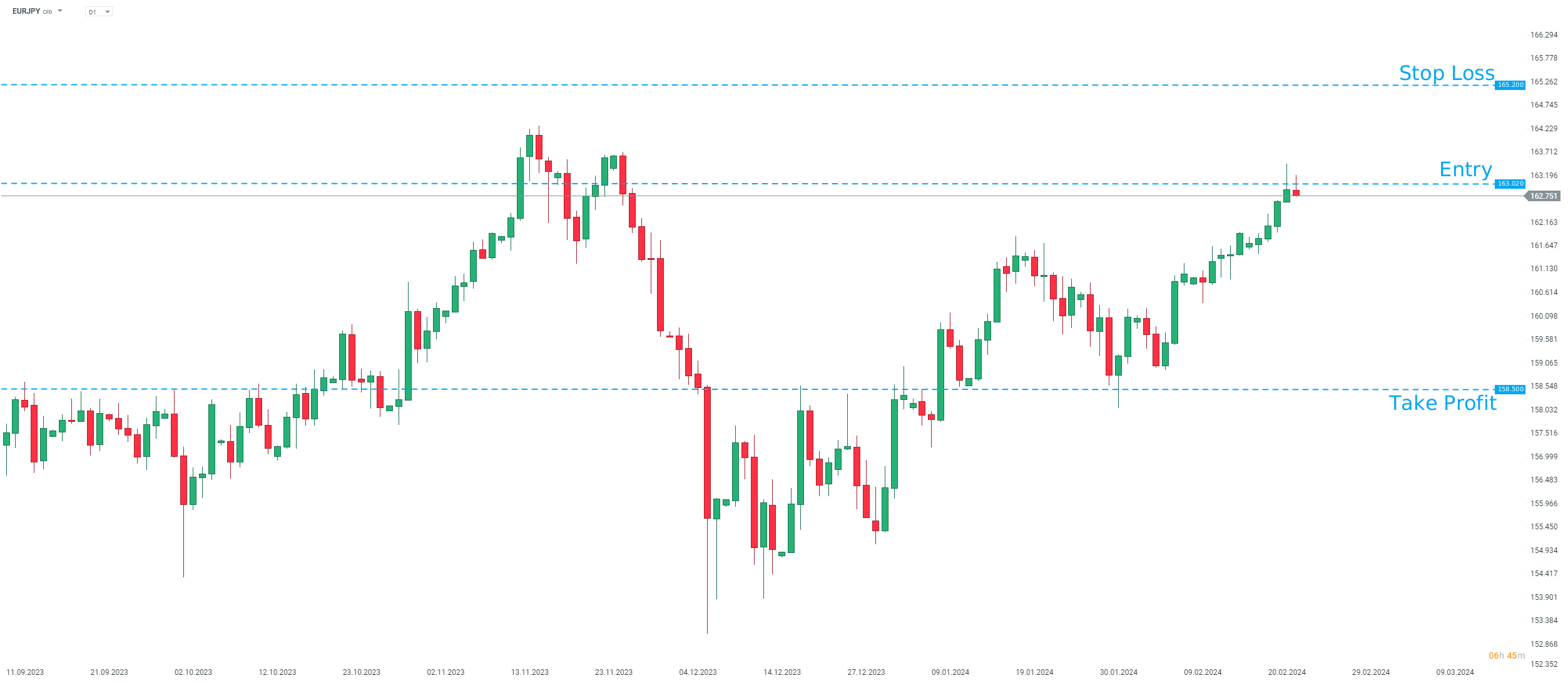 HSBC recommends taking a short position on EURJPY at market price with a target of 158.50 and a stop loss order placed at 165.20. Source: xStation5