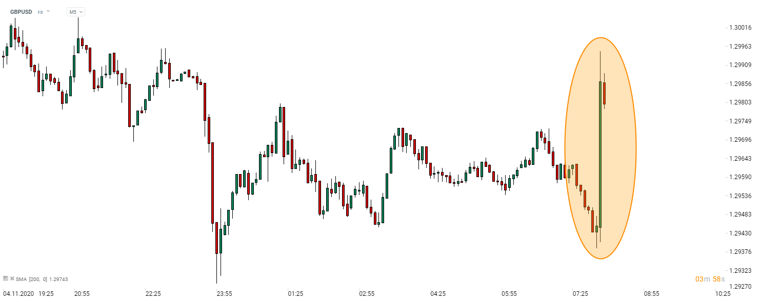 Bank of England brought forward policy rate announcement from 12:00 am GMT to 7:00 am GMT. It was widely expected that the UK central bank would boost the size of the asset purchase programme but some media outlets hinted that negative rates may be on the table. Announcement showed that the Bank made a unanimous decision to leave rates unchanged at 0.1%. However, asset purchases were increased from 745 billion GBP to 875 billion GBP (exp. 845 billion GBP). GBPUSD jumped from around 1.2940 to 1.2990 on the release.