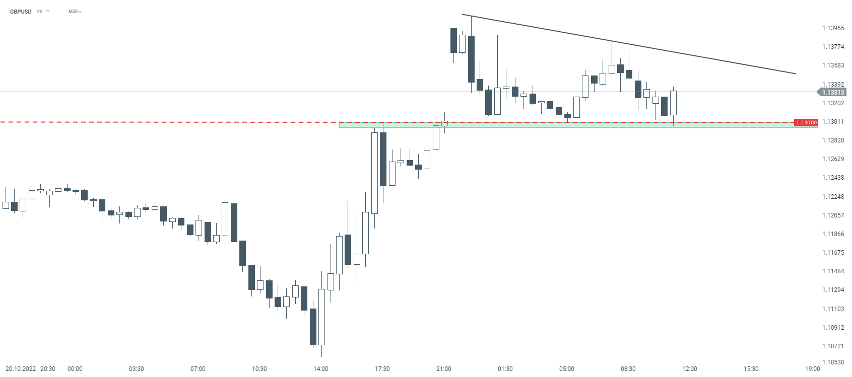 GBPUSD defended the 1.1300 support zone, which acts as a lower limit of a short-term triangle pattern. This support is a level to watch along with the short-term downward trendline that acts as the upper limit of the triangle pattern (currently in 1.1350 area).