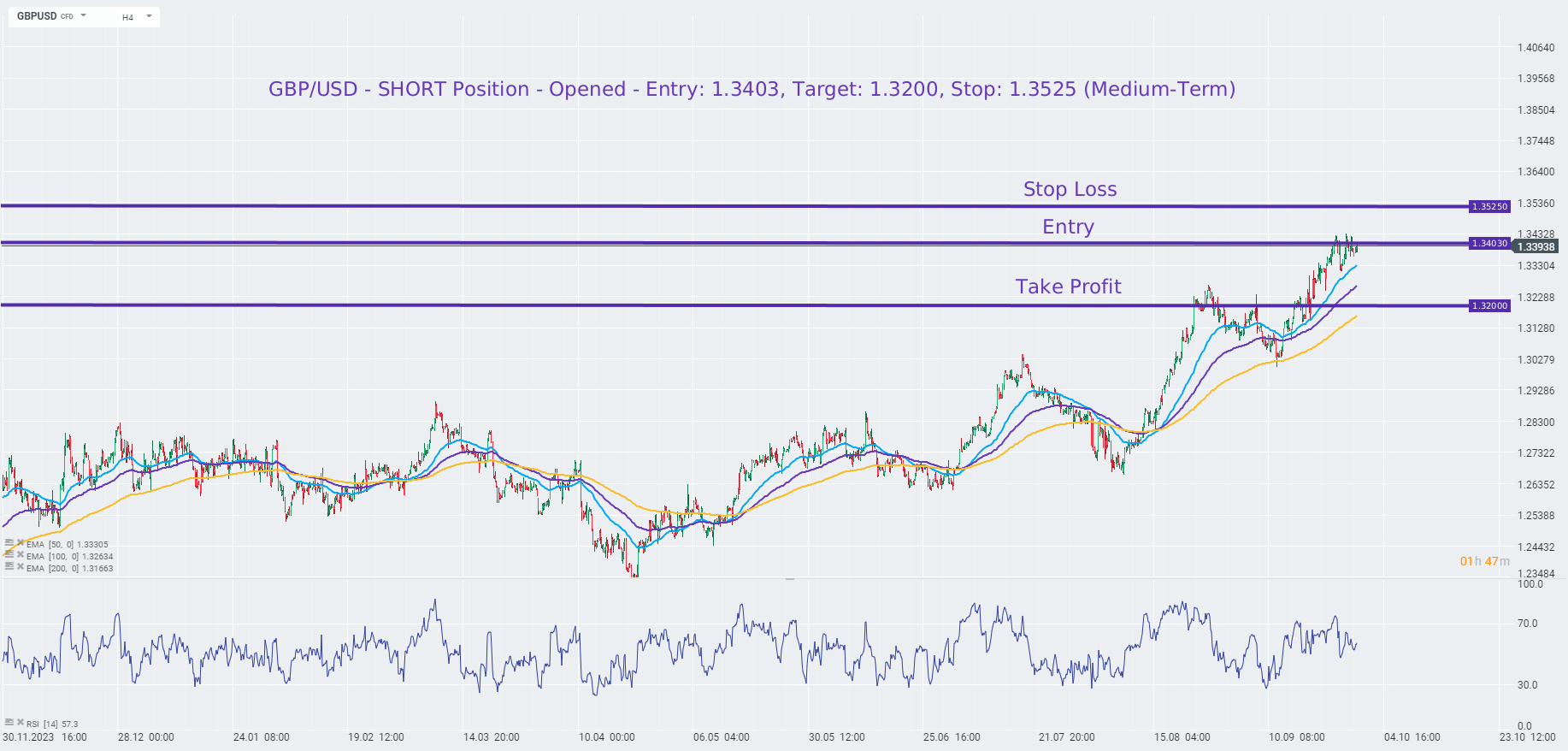 Bank of America recommends taking a short position on GBPUSD at the market price with a target at 1.3200 and a stop loss order at 1.3525. Source: xStation5