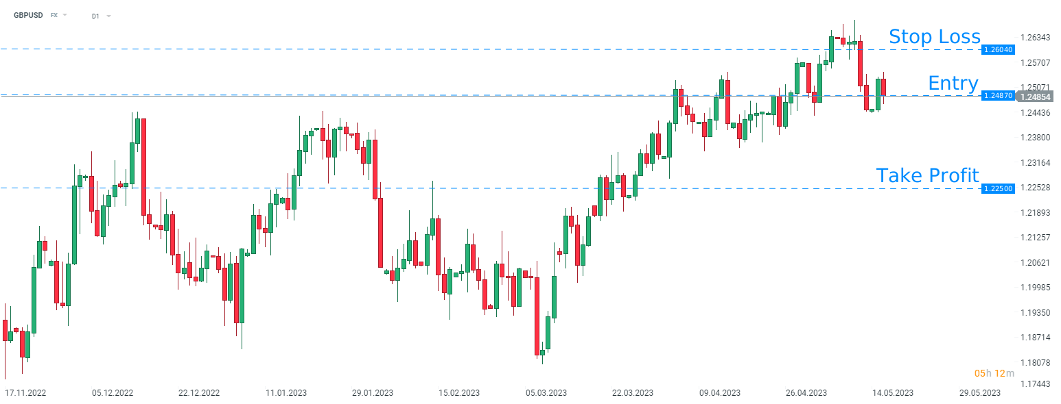 RBC recommends taking a short position on GBPUSD at market price with a target of 1.2250 and a stop loss order placed at 1.2604. Source: xStation5