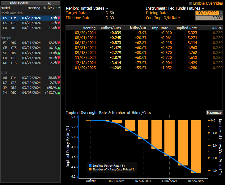 So far, the official message is that FOMC does not have enough confidence in inflation yet to begin cutting rates. Such a view was delivered by Fed Chair Powell at the latest post-meeting press conference as well as during his semiannual testimonies in Congress last week. However, Powell acknowledged that the next Fed move is likely to be cut and is likely to be delivered sometime this year.