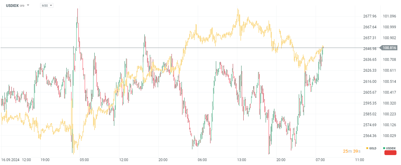 The US Dollar Index futures (USDIDX) rebounded from 99.8 level to almost 100.8 now, but gold didn't react to that move, stil rising, at $2650 per ounce; signalling short-term positive investors sentiments.