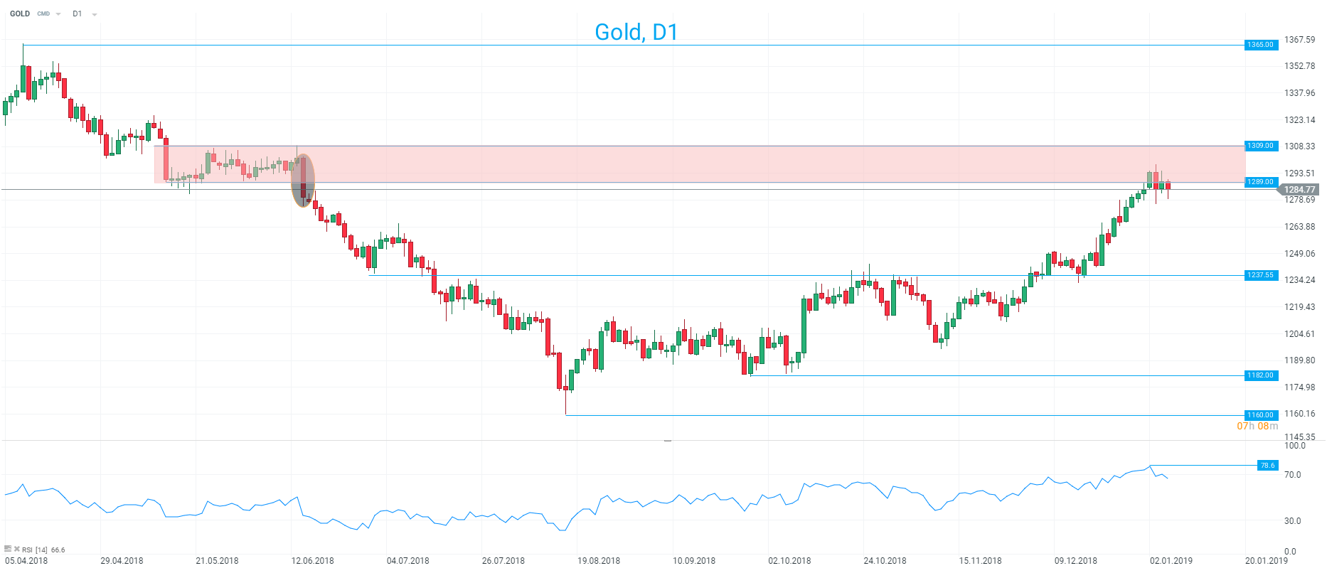 Risk-off moves often see both Gold and US government bond yields rise (TNOTE on xStation) and for most of November and December both of these markets did indeed rally. However, the recent recovery in stocks has coincided with a pull back in the TNOTE and this could apply some downward pressure on Gold. The longer term outlook remains favourable for the precious metal, but given the recent gains and the improving risk sentiment which has caused yields to rise (TNOTE to fall), then there could be a pullback in Gold in the coming days - especially if longs decide to take some profits off the table.