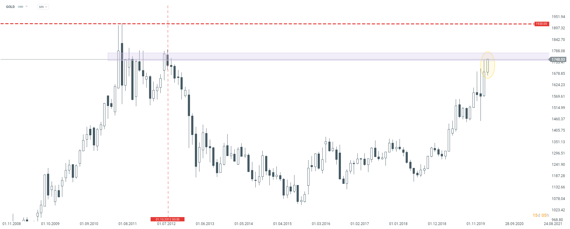 Gold rose to $1,748.00 per ounce, its highest level since April 14, 2020. Source: xStation5