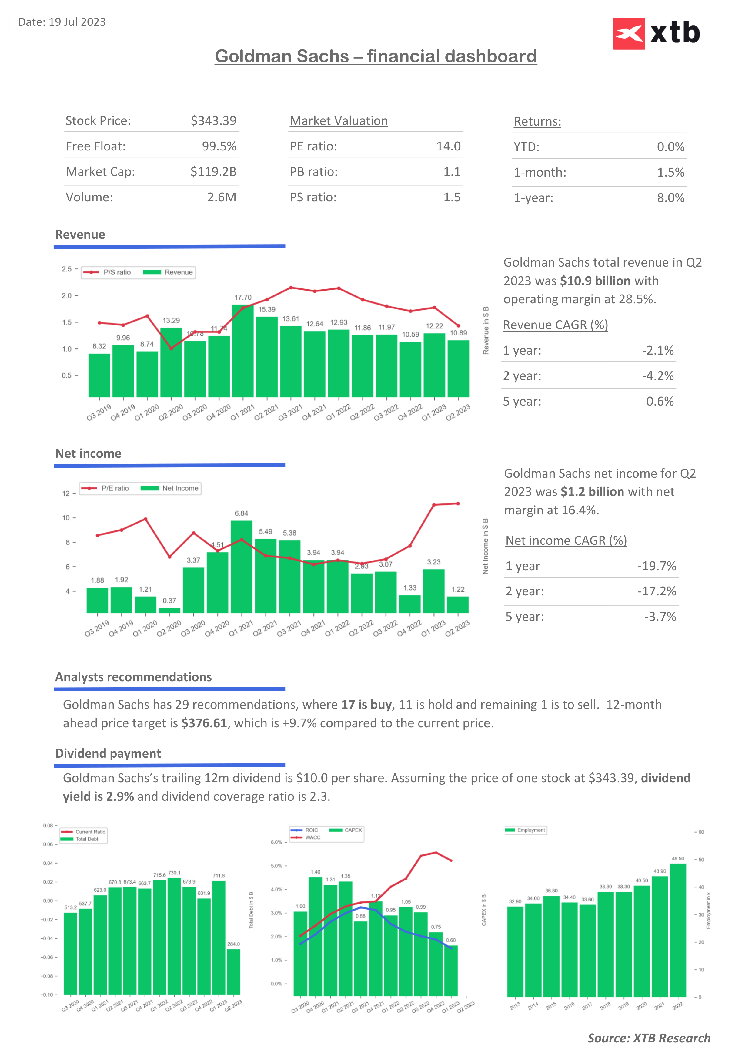 - Goldman Sachs generated net revenues of $1.9 billion and earnings per share of $3.88 in Q2 2023.