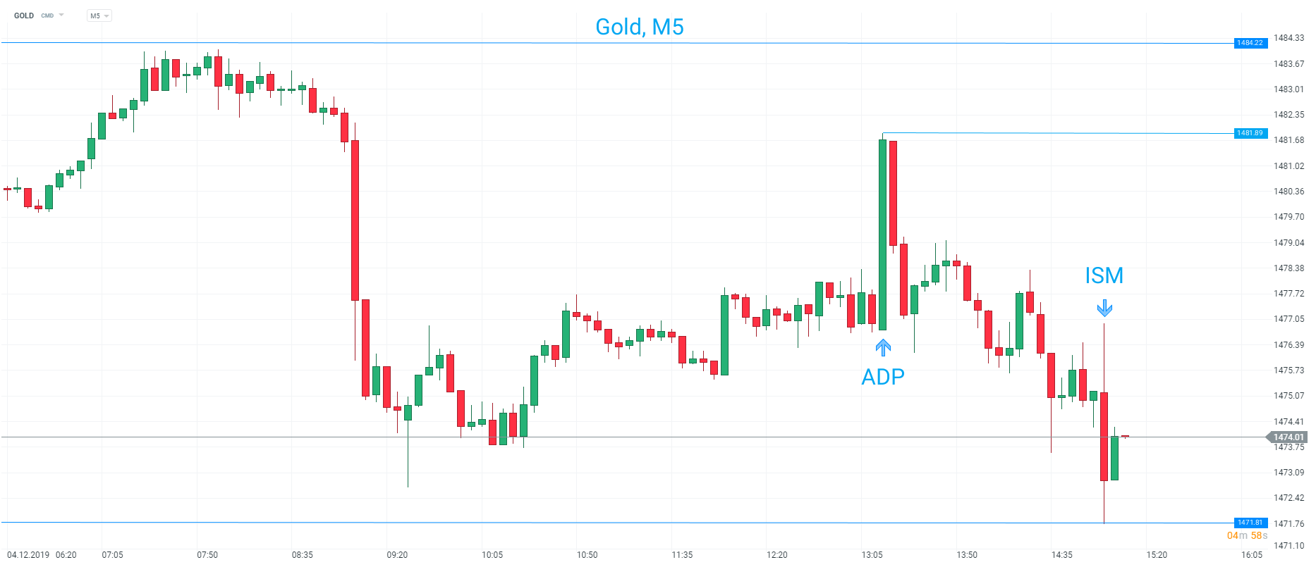 It’s been an eventful afternoon for Gold with the precious metal jumping higher after the ADP miss and initially rising once the ISM data dropped. However, price has moved lower as traders digested the report which on the whole seems far better than it first seemed. Source; xStation