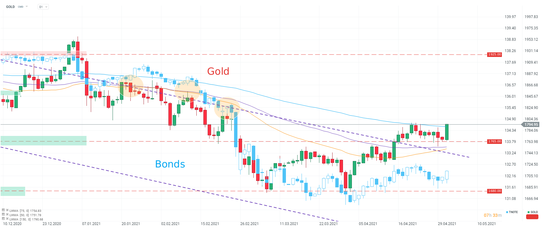 Ironically bonds… soared on the news fueling price recovery on Gold and Silver and driving US500 close to 4200 points.