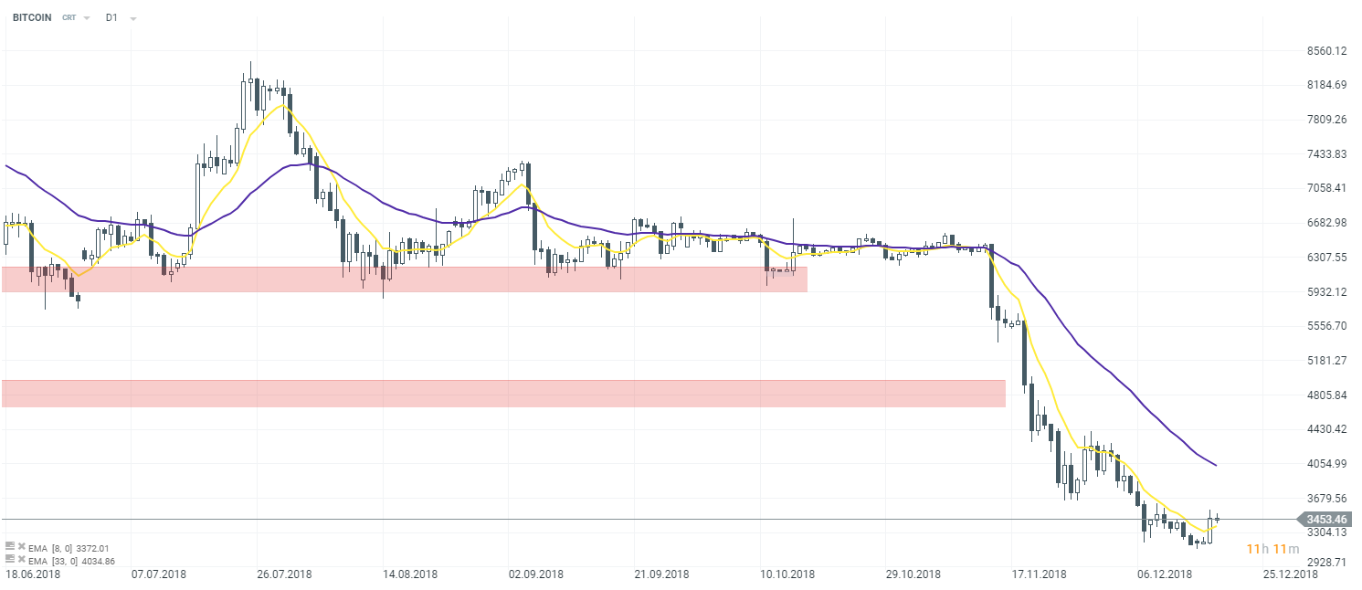 Bitcoin rose from around $3200 to around $3450 just in one day. As a result of these large rises, the largest cryptocurrency has returned to the levels seen several days ago. However, the cryptocurrency has not experienced any major price movements today so far. Source: xStation5