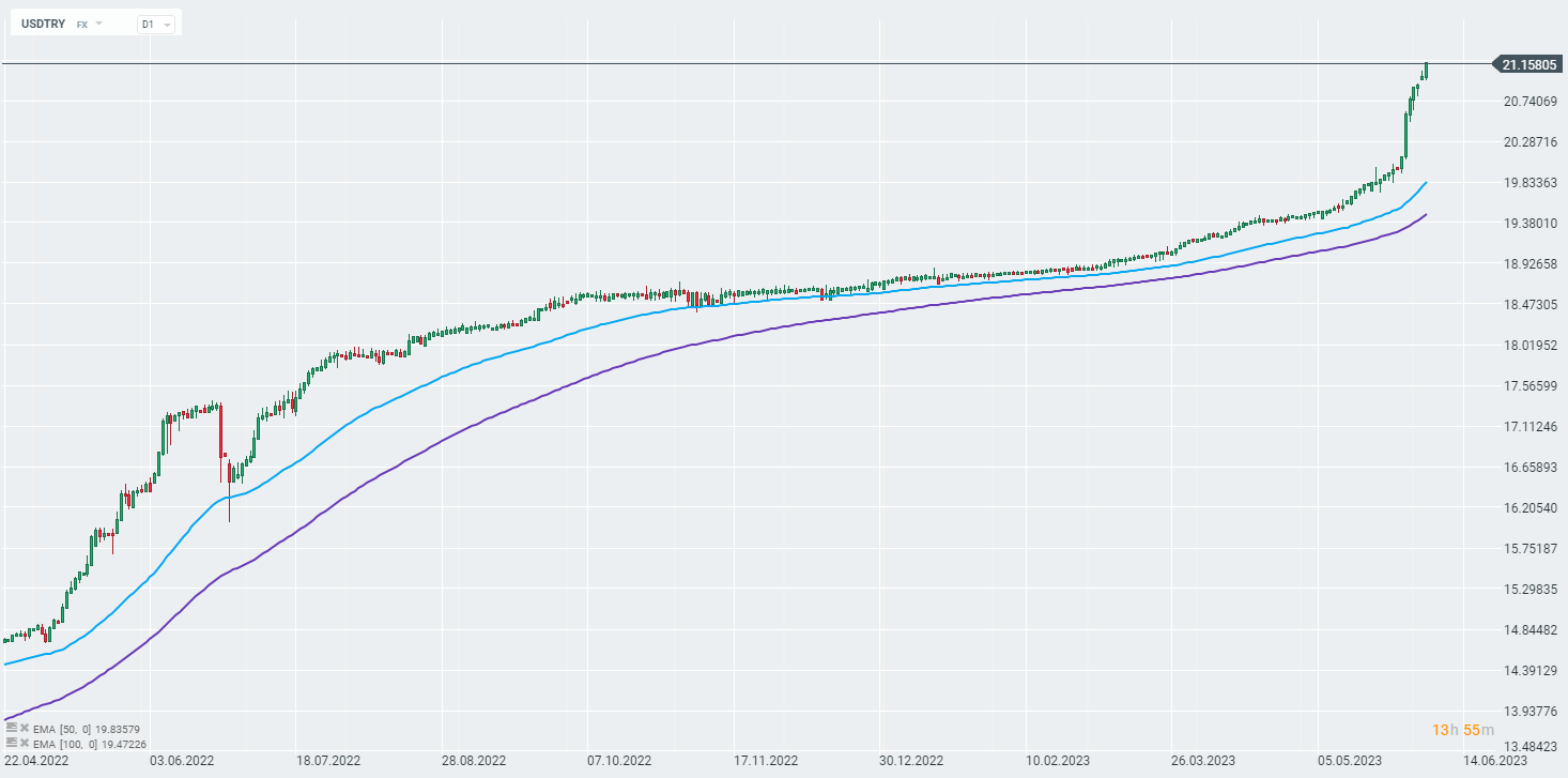 Quotation chart of the USDTRY pair. D1 interval. Source: xStation 5