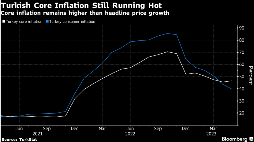 Inflation in Turkey fell to its lowest level since 2021, with consumer prices rising by 39.6% year-on-year in May, slightly lower than forecast (39.2%) and compared to 43.7% in the previous month. On a monthly basis, inflation was close to zero for the first time in four years.