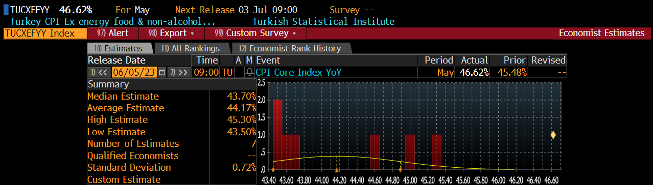 Core inflation surprised analysts with a much higher reading than expected, which, coupled with Erdogan's uncertain policy, puts tremendous pressure on the Turkish lira. Source: Bloomberg