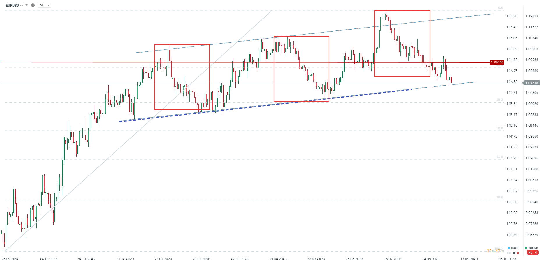 EURUSD continues its declines and is currently testing the 1.0750 levels. source: xStation5
