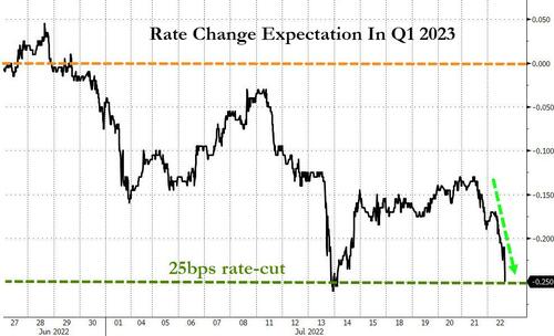 The market expects a more dovish FED in 2023. Source: Bloomberg via ZeroHedge