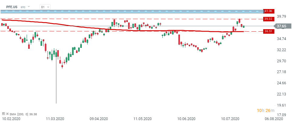 Pfizer (PFE.US) stock rose 3.4% in premarket trading after better than expected quarterly results. Should upbeat moods prevail after the US open, resistance at $41.06 may come into play. Source: xStation5