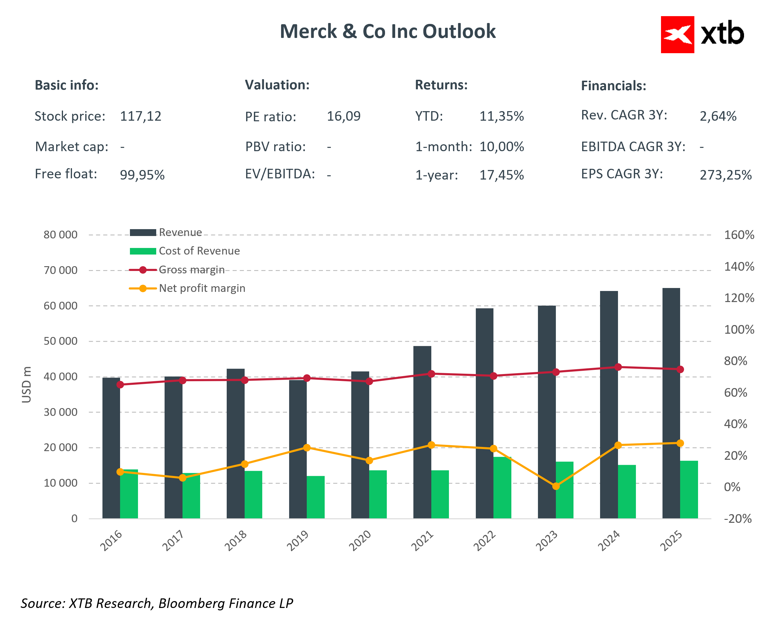 In terms of strategy and development, Merck continues efforts to diversify its portfolio and prepare for market changes, including the expiration of Keytruda’s U.S. patent in 2028. The company is focusing on expanding its portfolio with new oncology, pulmonary, and antiviral drugs, as well as innovating existing products. In this context, Merck is investing heavily in R&D and expanding U.S. production, planning capital and R&D expenditures exceeding USD 70 billion. Additionally, the company reached an agreement with the U.S. government regarding import tariffs, under which products will be supplied through a “direct-to-patient” program in exchange for a three-year tariff delay.