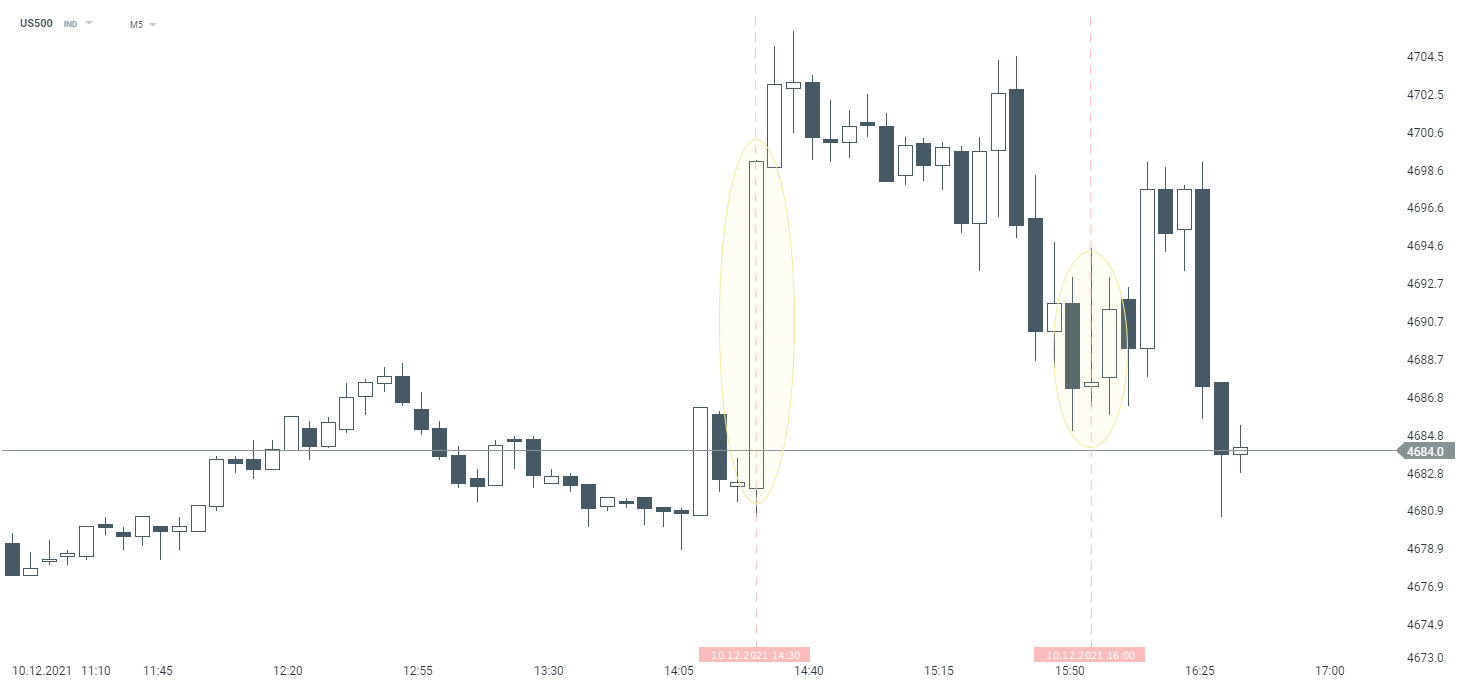 Both after the publication of the Michigan data and the earlier inflation data, we could observe a positive reaction on the US500. However, the upward movement has already been erased in both cases. Source: xStation5
