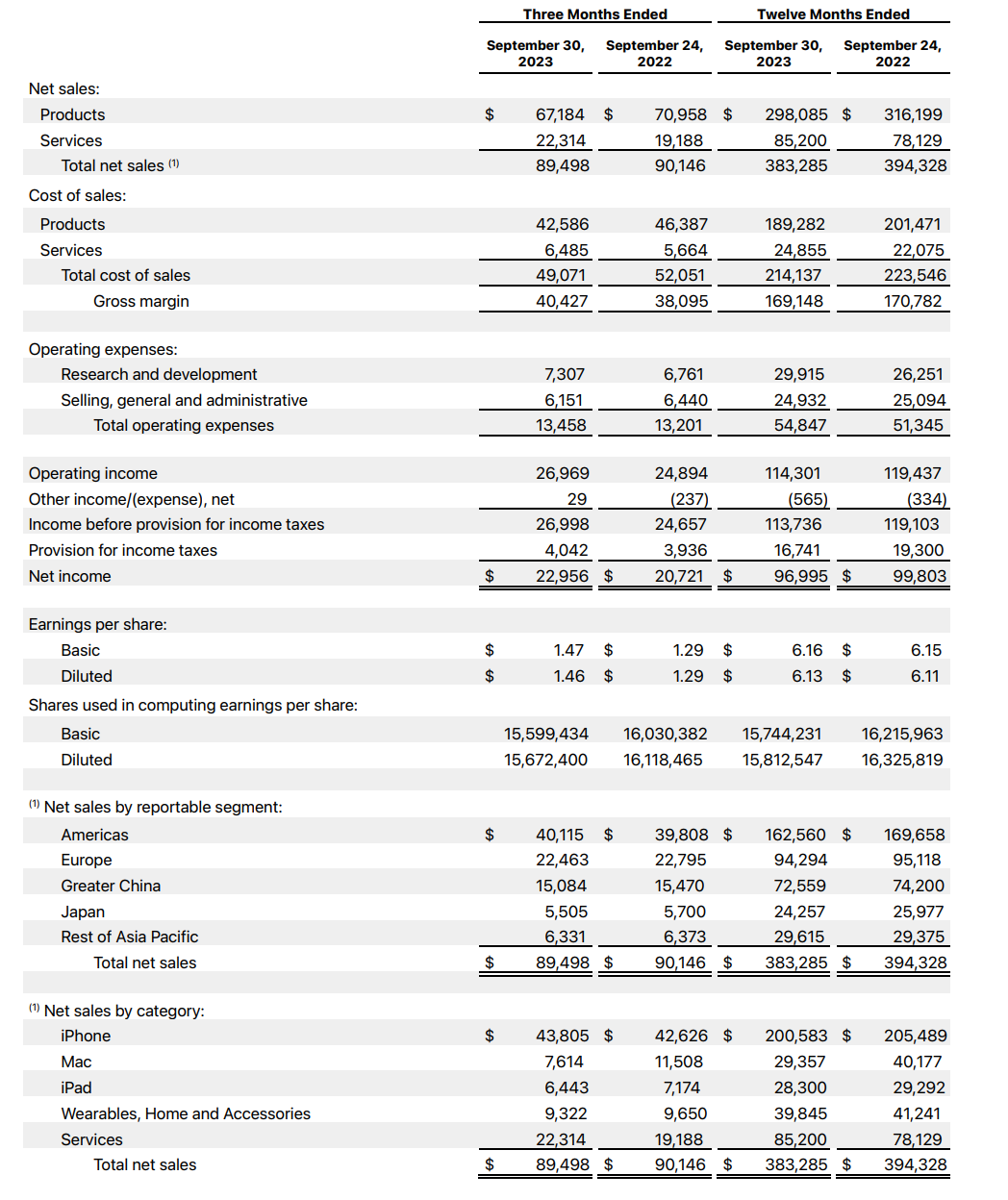 Apple’s board of directors has declared a cash dividend of $0.24 per share of the Company’s common stock. The dividend is payable on November 16, 2023 to shareholders of record as of the close of business on November 13, 2023.