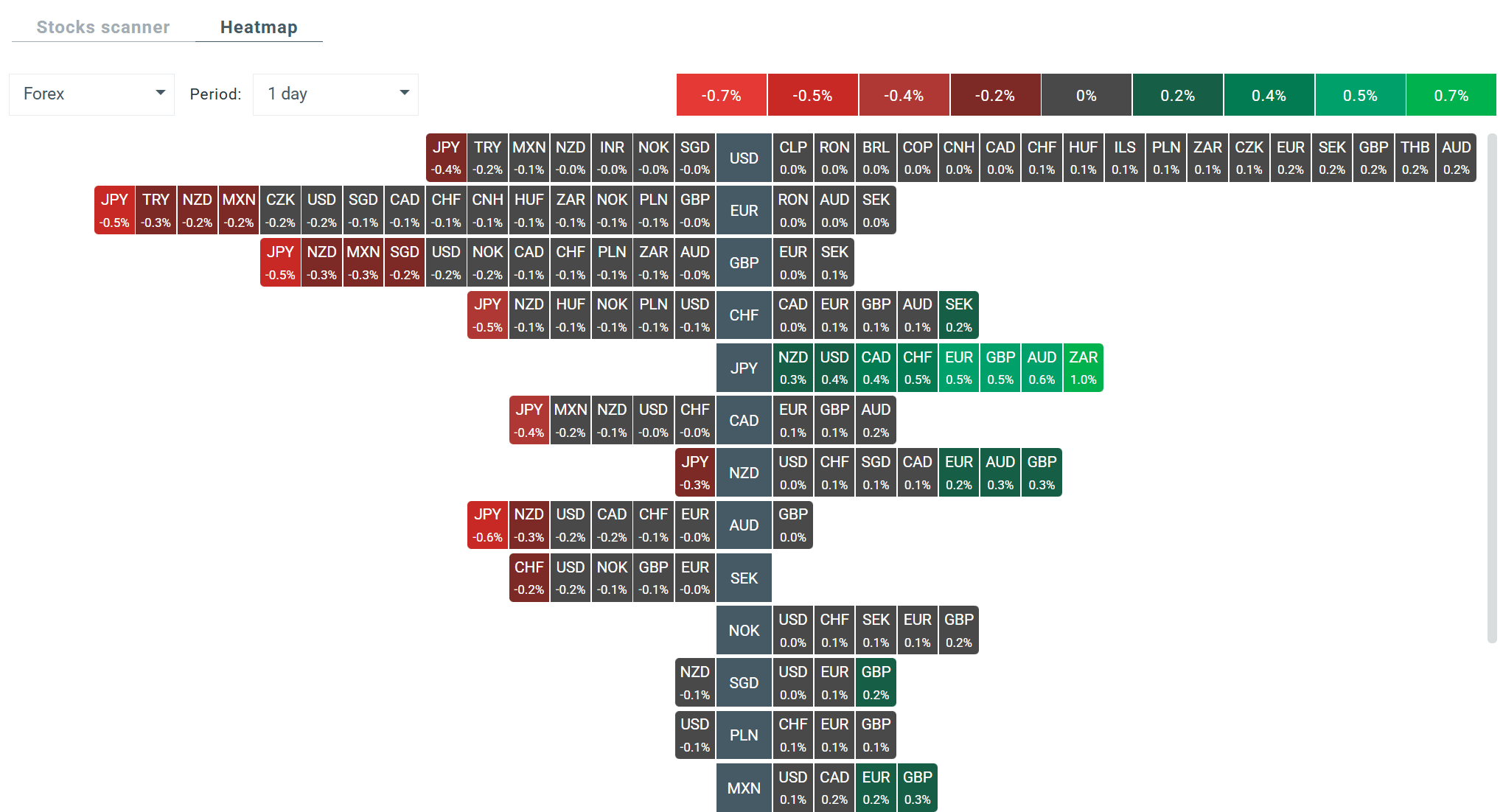 Heatmap of volatility currently visible on the Forex market. Source: xStation
