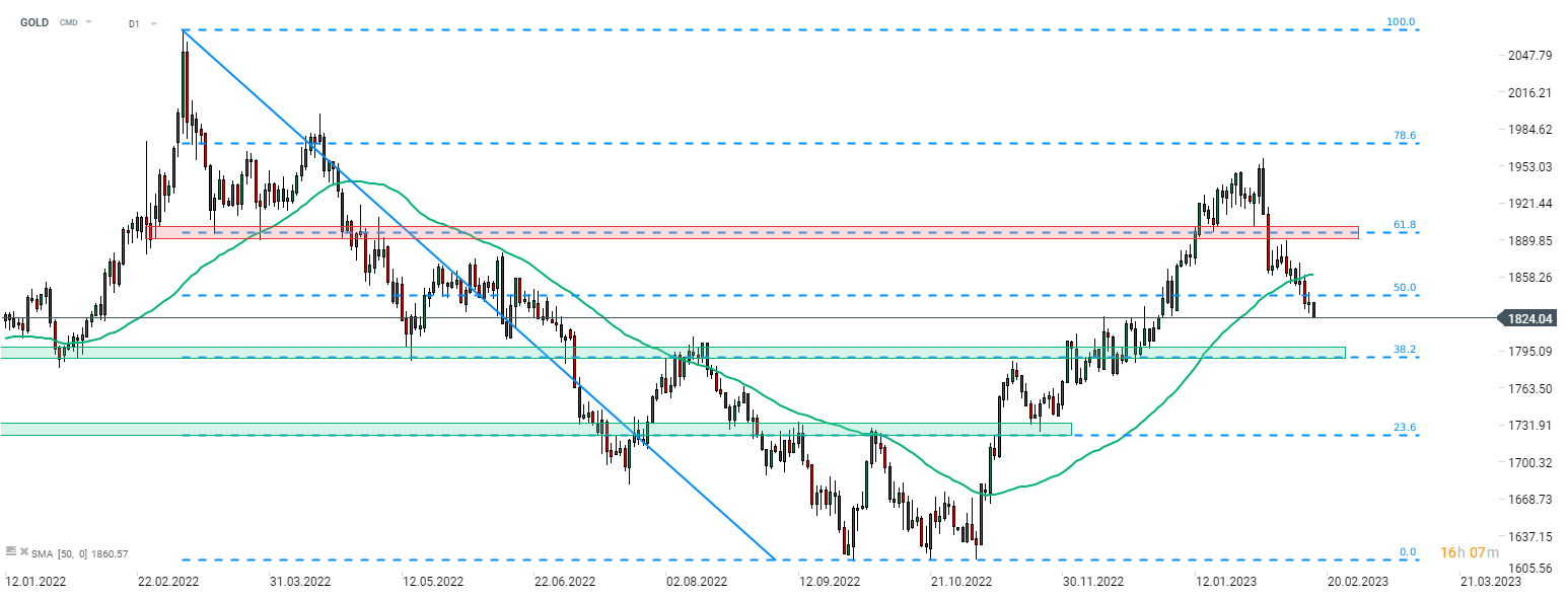 Strong USD, driven by hawkish Fed speakers, is putting a break on the recent gold market rally. GOLD has already pulled back around 7% off a recent high. Source: xStation5