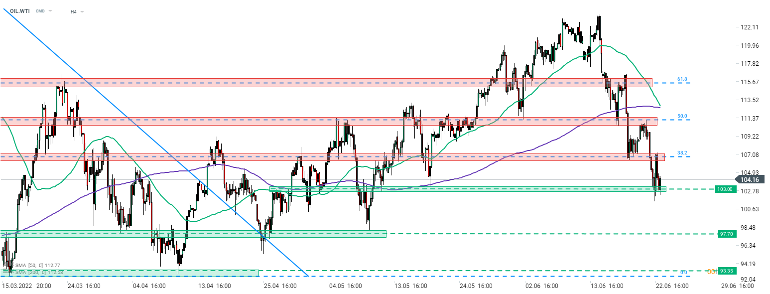 WTI (OIL.WTI) deepened declines during the Asian session, following a big and surprising inventory build signalled by API report. However, bulls managed to recover from the drop and now WTI trades flat on the day. Source: xStation5