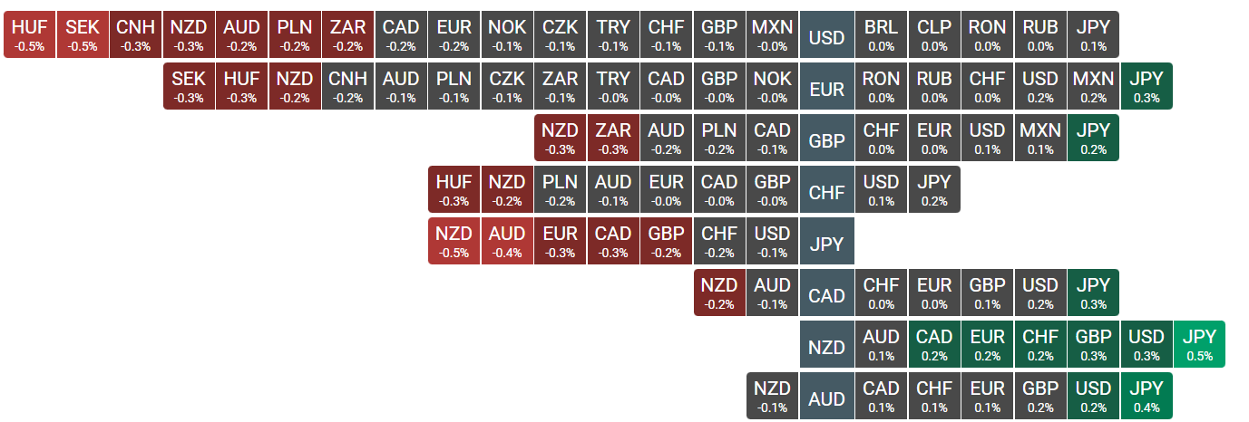 USD and JPY are the best performing major currencies while AUD and NZD lag the most