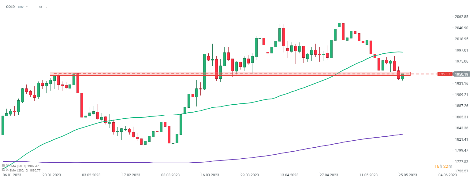 GOLD tries to regain some of yesterday's losses and climb back above $1,950 per ounce. Source: xStation5